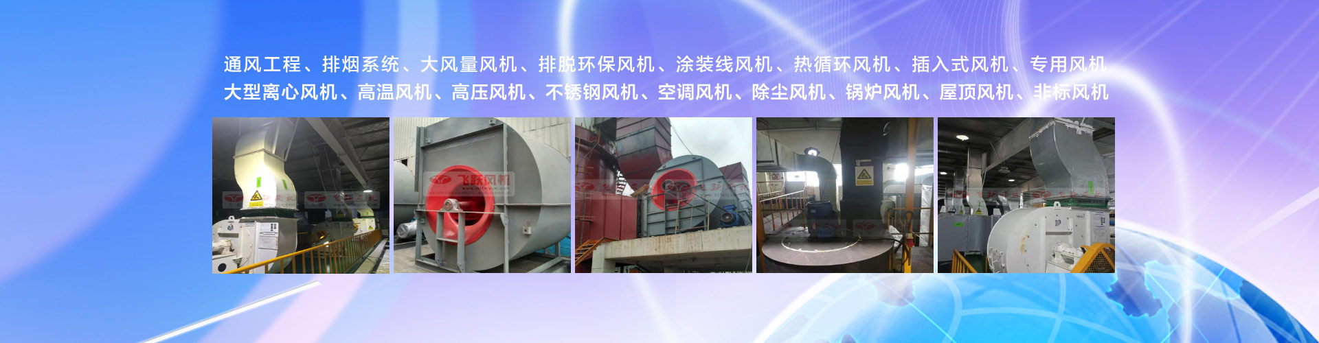 主要產品有:高溫風機、高壓風機、熱循環風機、鍋爐風機、除塵風機、不銹鋼風機、輸送風機、屋頂風機、紡織風機、空調風機、專用風機,非標風機等品種齊全。“精特靈”系列風機產品,以優良的性能,卓越的品質獲得了廣大用戶的廣泛好評。
